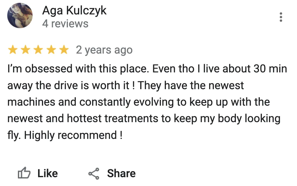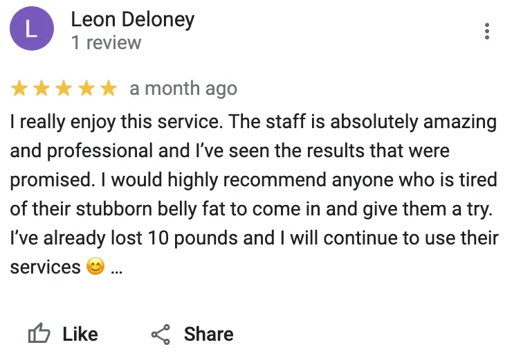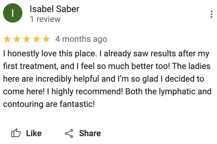 Results may vary depending on the person's body type and goals. Some people may see visible results immediately after the first session, while others may need more sessions to see significant changes. Maximum results may appear within 2 weeks as your body goes to work healing and flushing the fat cells through your lymphatic system.